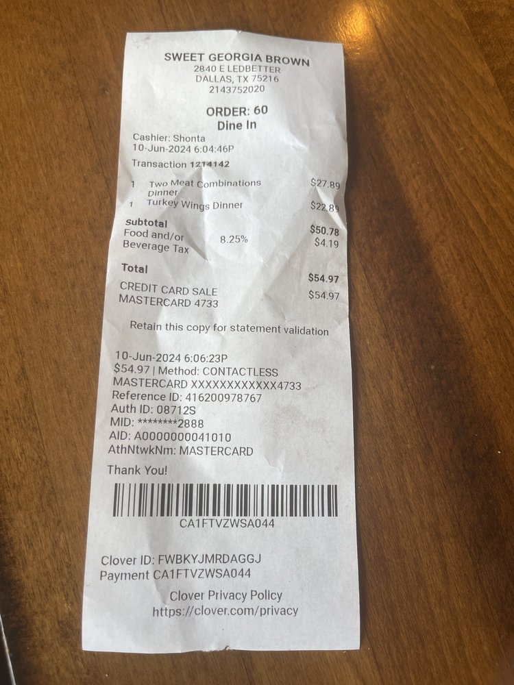 Sweet Georgia Brown is a soul food gem located in Dallas, offering a variety of delicious dishes in a casual setting. The menu includes mouthwatering options like turkey wings with gravy, flavorful Bar-B-Q, and must-try sweet potato pies. Customers rave about the juicy pork chops, perfectly seasoned dressing, and flavorful pinto beans. The generous portions ensure leftovers for days, making it a great value for the price. The friendly service and cozy atmosphere add to the overall dining experience. Whether you're in the mood for traditional soul food favorites or looking to try something new, Sweet Georgia Brown delivers on taste and quality. Don't miss out on this hidden gem for a true taste of Southern comfort food.